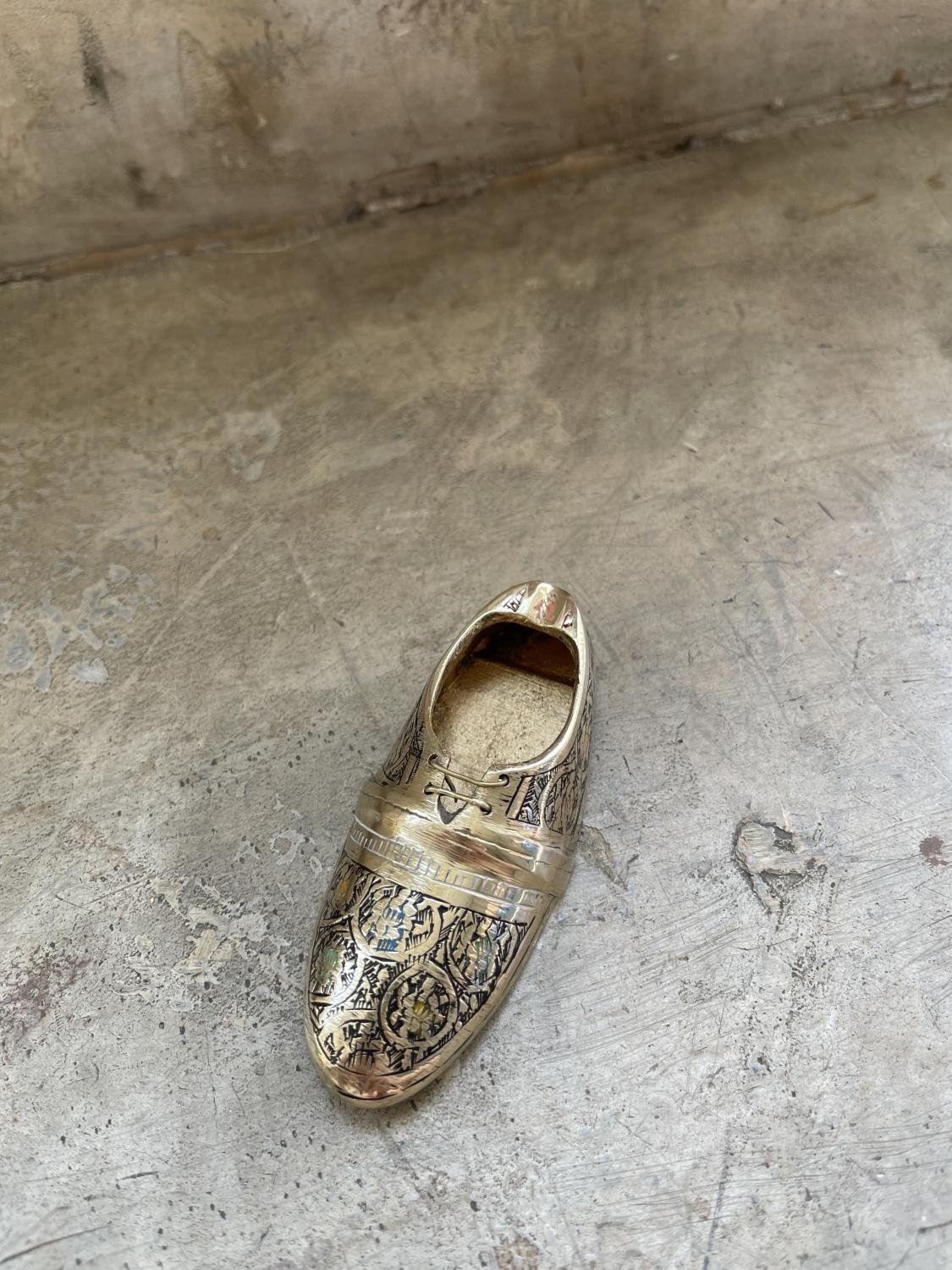 8202068 Пепельница "Башмак" латунь резная CHUNIYA JALI тёмная цветная эмаль 4"; L=10,5 см (2068) 820