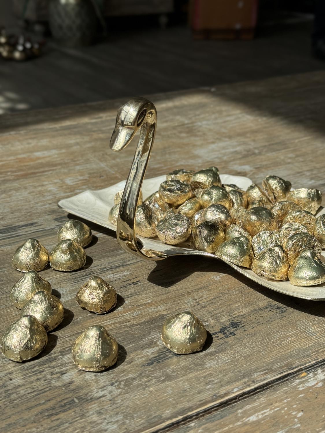 8719868 Конфетница «Лебедь-Ракушка» латунь резная цветная эмаль 12"; 30,5 см; (19868) 8719868